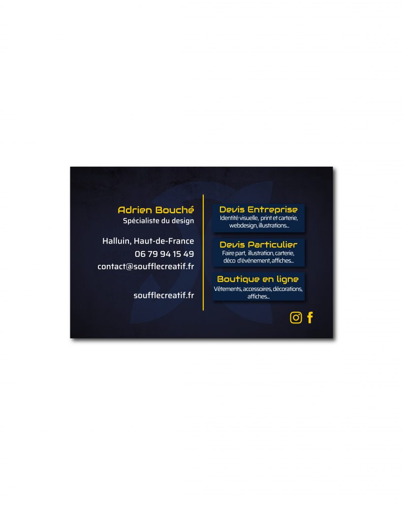 J’ai eu le plaisir de concevoir les cartes de visite pour Souffle Créatif, ma propre entreprise de design graphique. Ce projet a été l’occasion de mettre en avant mon style créatif et mon approche professionnelle à travers un élément essentiel de l’identité visuelle de l’entreprise.