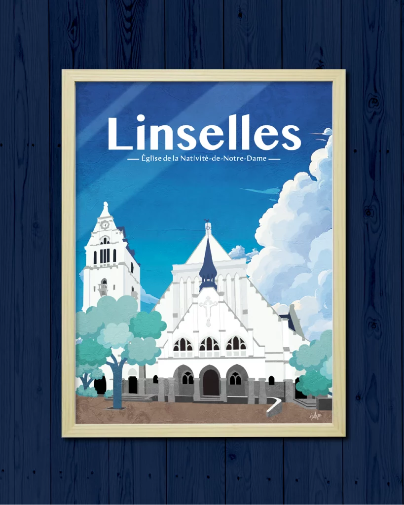Idéale pour les Linsellois fiers de leur ville, les amoureux de l'architecture régionale ou pour apporter une touche de luminosité et d'élégance à votre intérieur. Cette affiche trouve naturellement sa place dans un salon, un bureau ou une entrée, célébrant la beauté de notre patrimoine local.